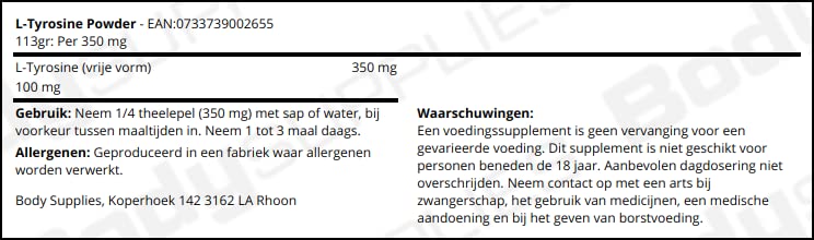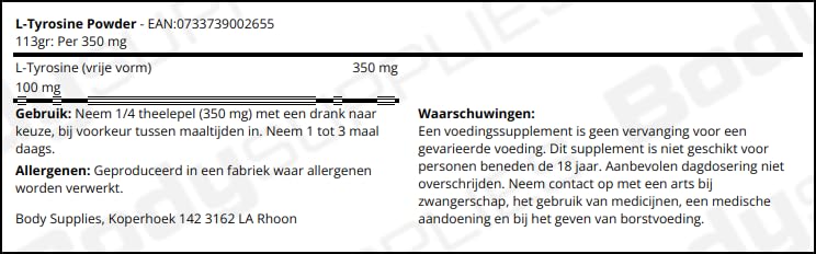 This Product has not been evaluated by the Food and Drug Administration. They are not intended to Diagnose Treat Cure or prevent any disease. While we work to ensure that product information is correct on occasion manufacturers may alter their ingredient lists. Tyrosine is a conditionally indispensable amino acid required for the production of the neurotransmitters dopamine adrenaline and noradrenaline as well as for the skin pigment melanin. Noradrenaline (norepinephrine) and adrenaline (epinephrine) are the main actors in the body's response to acute stress and along with dopamine help to support a positive mood and mental alertness. In addition tyrosine is especially critical for the normal function of the thyroid gland.