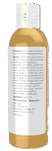 Size:4 oz 100% Pure Intense Protection For Chapped Lips Skin Condition: Skin in need of protection from wind burn and environmental factors. Solution: 100% Pure Liquid Lanolin is a powerful moisturizer that can promote smoothness and translucency associated with healthy youthful skin. Lanolin is remarkably close to our own natural skin oils and has a texture that is similar to petroleum jelly. It is perfect for use on very dry rough or chapped skin. Lanolin is a natural oil derived entirely from the fiber of sheep's wool. It is secreted from the skin of sheep and becomes trapped in the sheep's wool giving protection from rain and moisture. Lanolin is considered a "heavy duty" moisturizer and emollient that promotes healthy youthful skin. NOW Solutions is the next step in the evolution of personal care products. This comprehensive natural line encompasses anti-aging moisturizers and serums bath and body gels shampoos and conditioners oral care skin care and essential oils all of which are formulated with the finest functional ingredients from around the world. NOW Solutions products avoid harsh chemicals and synthetic ingredients in all of our formulations to provide a more natural product line.