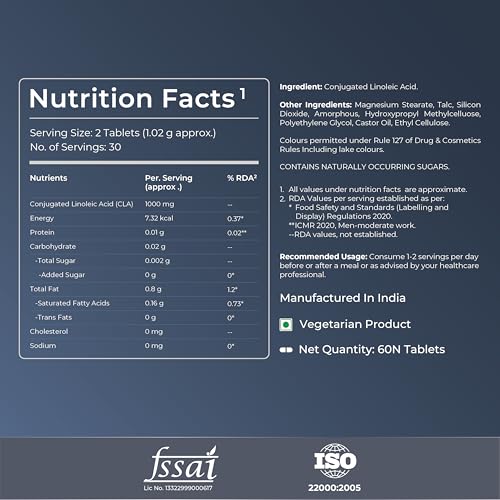 Nutrabay Pro CLA (Conjugated Linoleic Acid) | Fat Burner, Boosts Metabolism & Lean Muscle Build Supplement, 1000mg - 60 Veg Tablets
