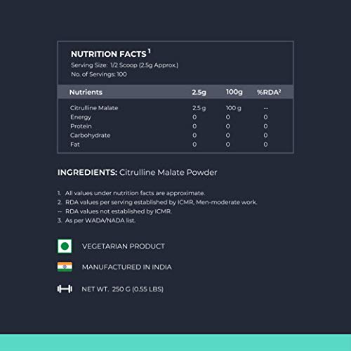 Nutrabay Pure 100% Citrulline Malate Powder - Boosts Nitric Oxide Pre Workout supplement for Men & Women - 250g UnflavouredCitrulline Malate is an amino acid compound which has got some attention due to its potential to delay the onset of fatigue during intense bouts of training. This compound is an amino acid which is composed of citrulline and ester of malic acid (malate). Citrulline Malate assists in the clearance of ammonia from the blood and muscle tissue reducing the onset of fatigue and has been shown to reduce post-exercise muscle soreness following high intensity resistance exercise.Nutrabay Pure 100% L-Arginine Powder - Muscle Building Amino Acid Faster Recovery Reduce Fatigue & Build Endurance Pre Workout supplement for Men & Women - 250g UnflavouredWhat is Arginine HCL? Arginine also called l-arginine is an amino acid found in meat poultry and dairy products. When metabolized arginine converts into a chemical called nitric oxide which helps blood vessels dilate and increases blood flow. It also stimulates insulin release removes toxic ammonia from the blood boosts immunity and heart health and reduces inflammation.