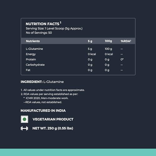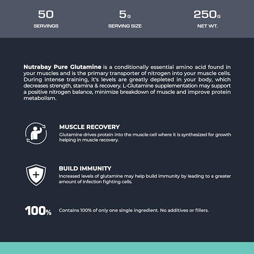 • Nutrabay Pure L-Glutamine provides 5g of micronized glutamine that helps in soothing the muscles to the recovery process and restricts muscle breakdown post-workout
