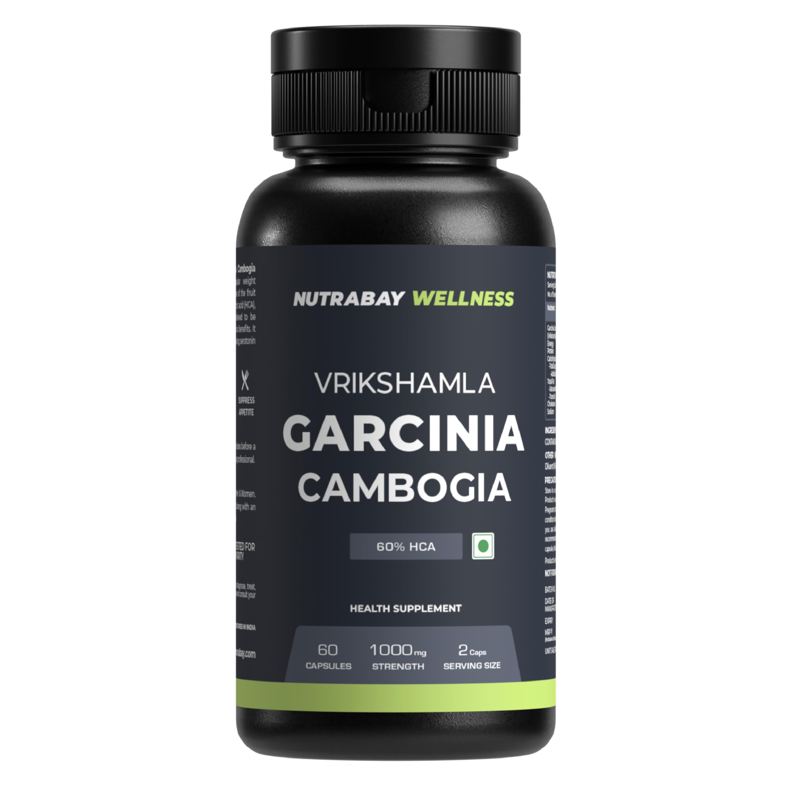 Nutrabay Wellness Garcinia Cambogia helps to reduce your appetite block fat production and reduce belly fat. It also blocks the production of new fats in your body boosts your digestive system. It is the ideal fat burner supplement for men and women. It works on all types of fat stored on your body like belly fat arms fat thigh fat and is useful for decreasing weight. It burns calories boosts energy enhances energy and promotes healthy metabolism. A healthy metabolism is a key to losing out. So you can burn more calories and lose more weight. It can be consumed by anyone daily for the best result. Non-GMO Gluten-Free Does NOT Contain Soy Dairy Yeast Eggs Corn Nuts Caffeine Additives Preservatives or Coloring. Consume 2 capsules daily 30 minutes before meal or as suggested by healthcare professionsal / dietician. This product can be consumed by Adults Elderly Men & Women.
