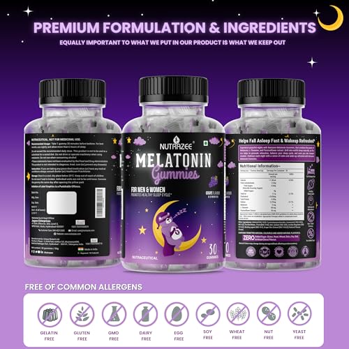 Helps fall asleep fast and wake up refreshed*: Nutrazee Melatonin Sleep Gummies are designed to promote a healthy sleep cycle* and improve sleep quality* without forming a habit or dependency.