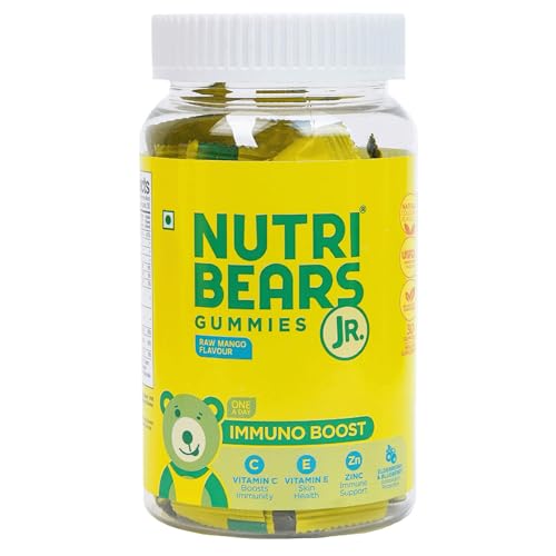 NutriBears Immuno Boost with Vitamin C, E, Zinc, Natural Elderberry & Blueberry, Advanced Antioxidants, Immunity Gummies for Kids and Adults (30 Gummy, Raw Mango Flavour)