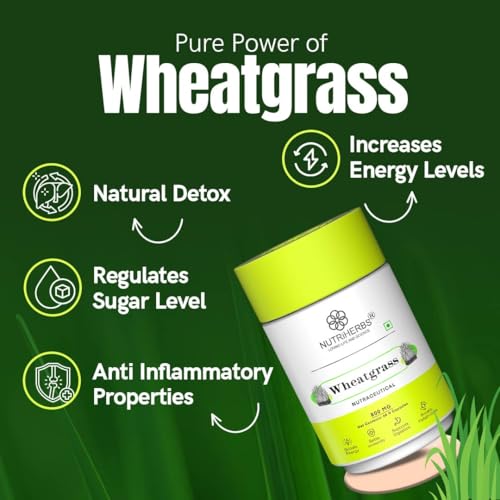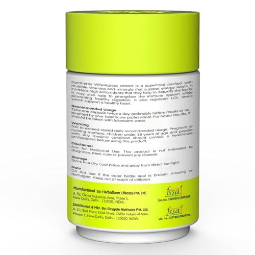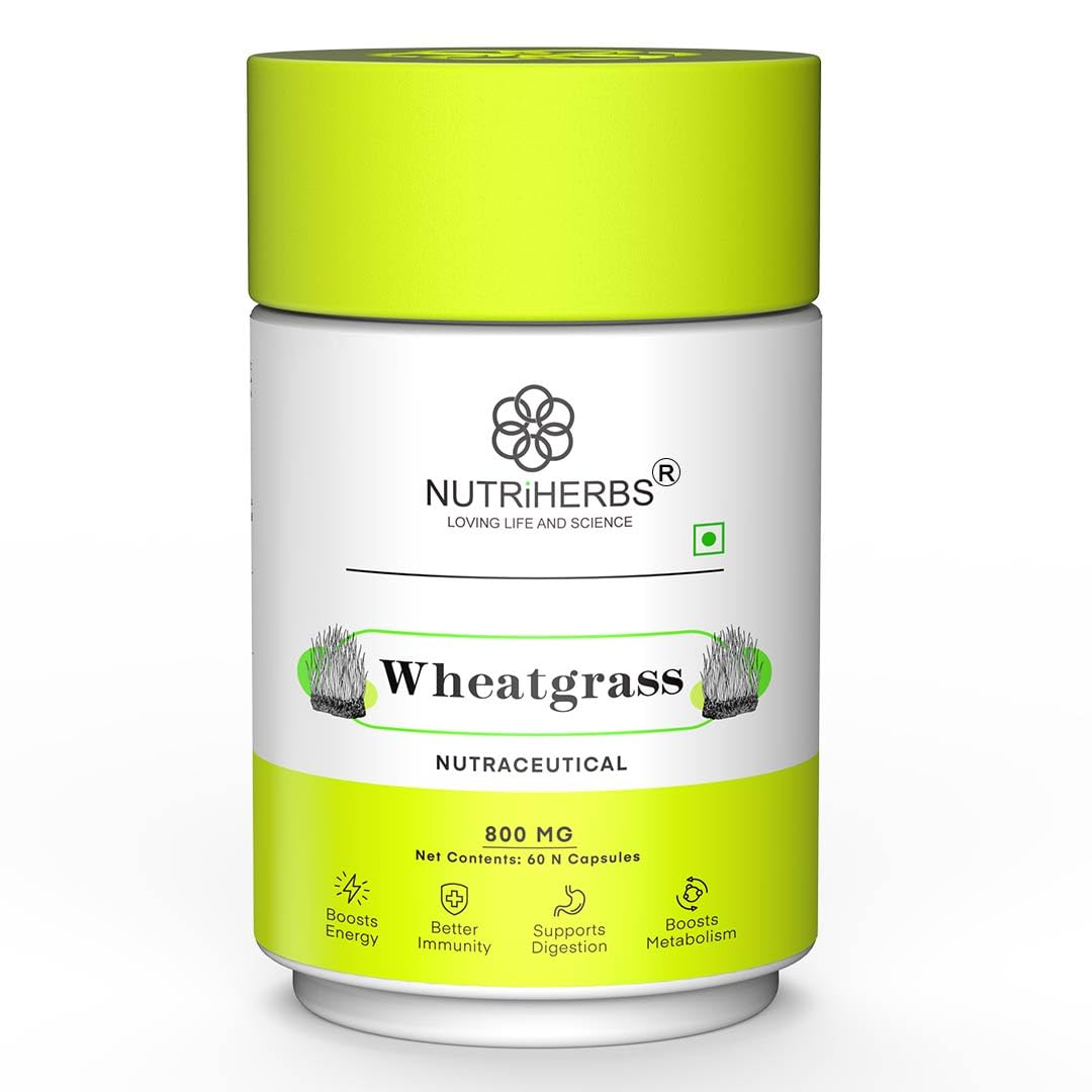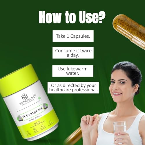 • NATURAL SUPER FOOD ENRICHED ENERGY SUPPLEMENT Nutriherbs Wheatgrass capsules are made in India & free from chemicals and fillers. These capsules should be consumed twice daily for best results. These natural detoxification capsules are organic highly effe