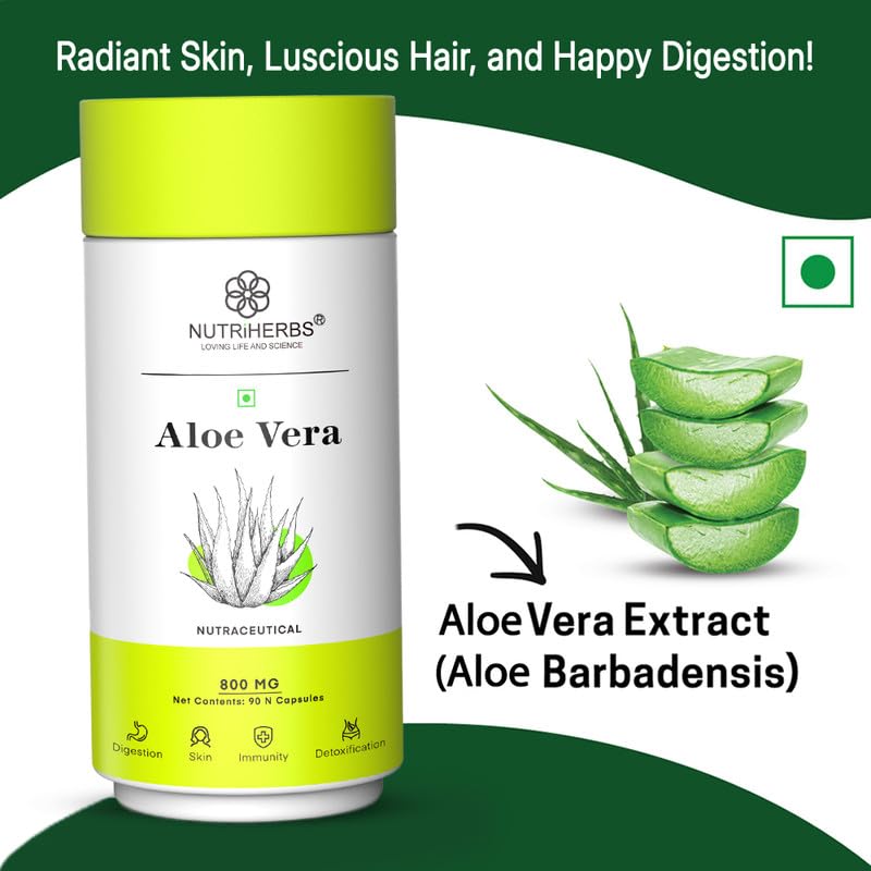 • Nutriherbs Aloe Vera extract capsules are made in India & free from harmful fillers. These capsules should be consumed twice daily with lukewarm water for best results. These healthy capsules are organic and highly effective & may contribute towards a bet