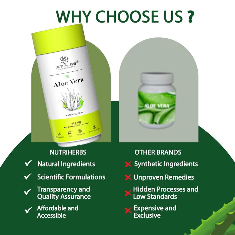 • Aloe vera also referred to as the ‘wonder plant’ has been used since ages for its therapeutic properties. Nutriherbs Aloe Vera Extract Capsules contain a variety of antioxidants essential minerals like zinc potassium vitamin A E K and Vitamin B comple