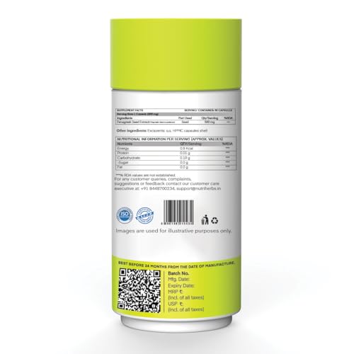 • Nutriherbs Fenugreek capsules are made in India & free from chemicals and fillers. These capsules should be consumed twice daily for best results. These digestion and lactation enhancer capsules are organic highly effective & may contribute towards a bett