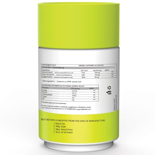 • Dosage: Take one capsule of Garcinia Cambogia two times a day 30 minutes before Breakfast and Dinner with lukewarm water or as directed by your Healthcare professional.