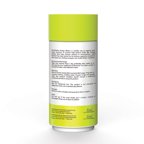 • Nutriherbs Ginkgo Biloba capsules are prepared by combining extracts from Ginkgo biloba and bramhi plants.