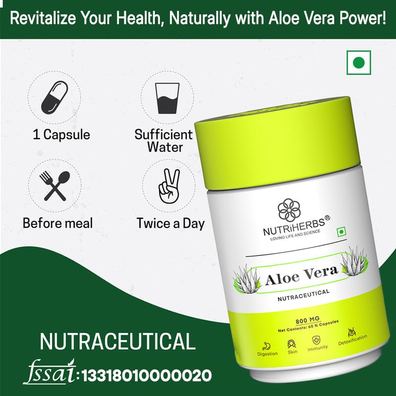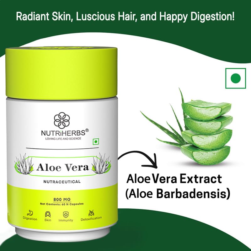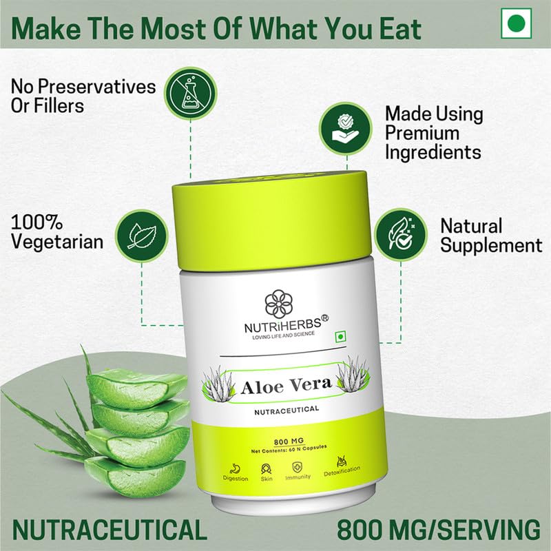 • Nutriherbs Aloe Vera extract capsules are made in India & free from harmful fillers. These capsules should be consumed twice daily with lukewarm water for best results. These healthy capsules are organic and highly effective & may contribute towards a bet