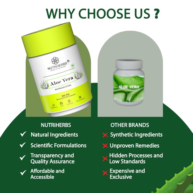 • Aloe vera also referred to as the ‘wonder plant’ has been used since ages for its therapeutic properties. Nutriherbs Aloe Vera Extract Capsules contain a variety of antioxidants essential minerals like zinc potassium vitamin A E K and Vitamin B comple