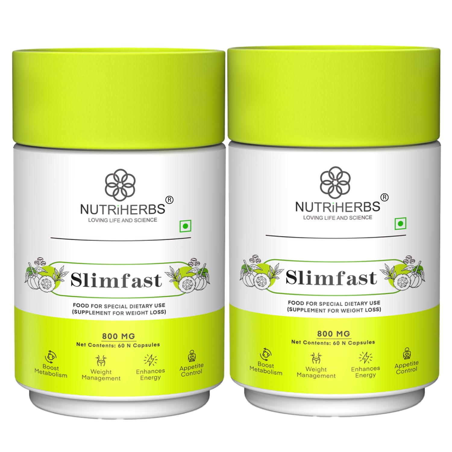• Nutriherbs Slim fast capsules act as appetite suppressants. It also acts as a metabolic enhancer and promotes weight management. It stimulates the metabolic rate and effectively replenishes energy stores across the body to boost up metabolism.
