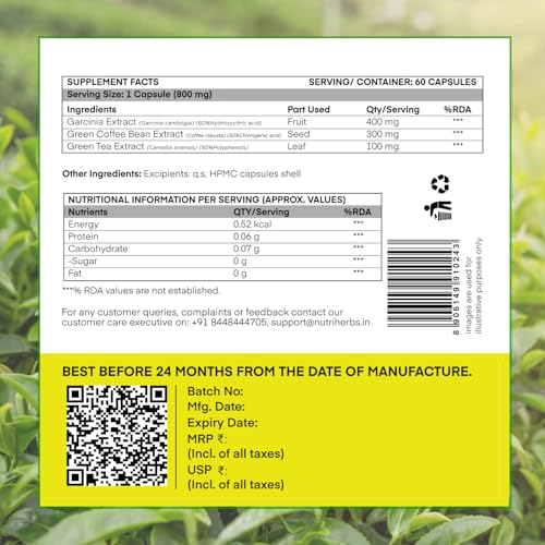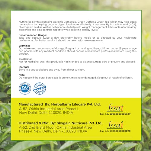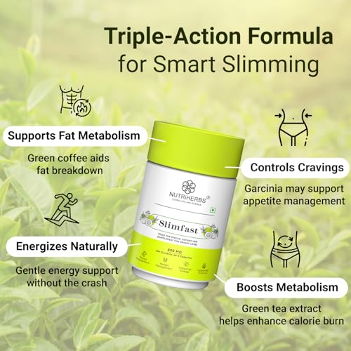 • Nutriherbs Slim fast is a natural weight loss supplement for women & men which contains Garcinia cambogia Green tea and Green Coffee Bean extract which may help in improves the overall body functions.