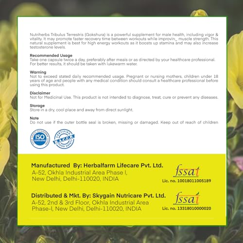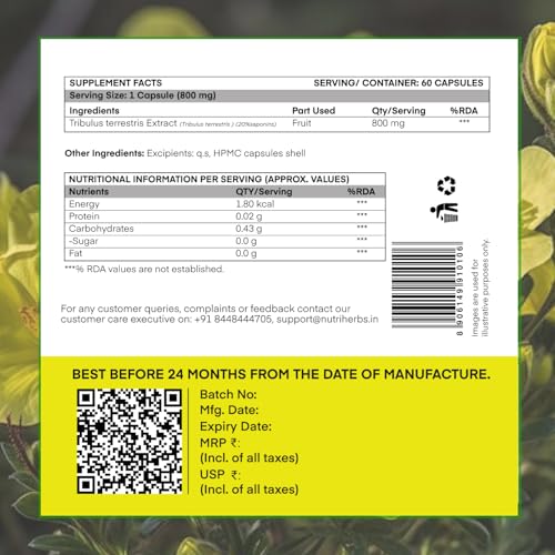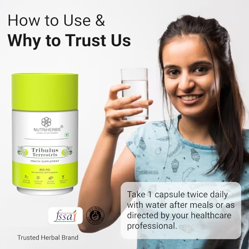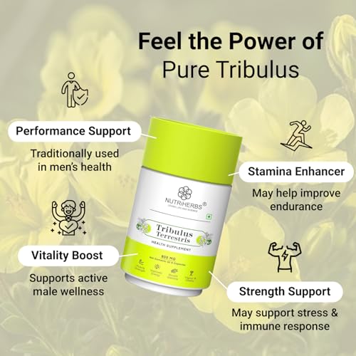 • The Performance Enhancer & Muscle Growth Supplement Nutriherbs Tribulus Terrestris for men capsules are made in India & free from chemicals and fillers. These capsules should be consumed twice daily for best results. These performance enhancer capsules ar