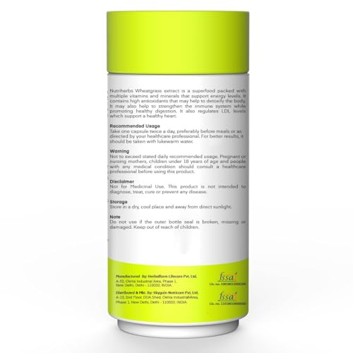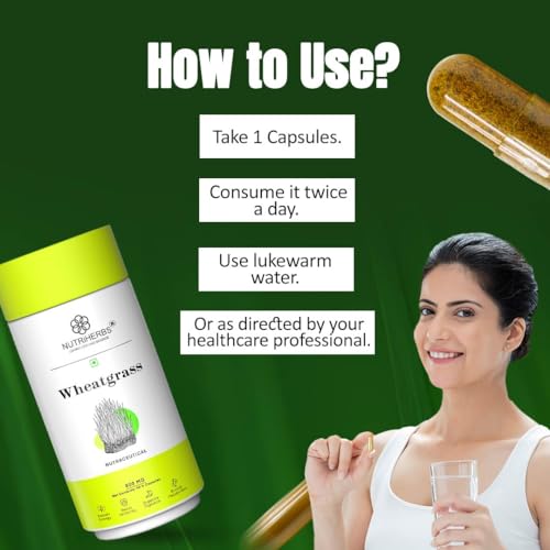 • Nutriherbs Wheatgrass capsules are made in India & free from chemicals and fillers. These capsules should be consumed twice daily for best results. These natural detoxification capsules are organic highly effective & may contribute towards a better lifest