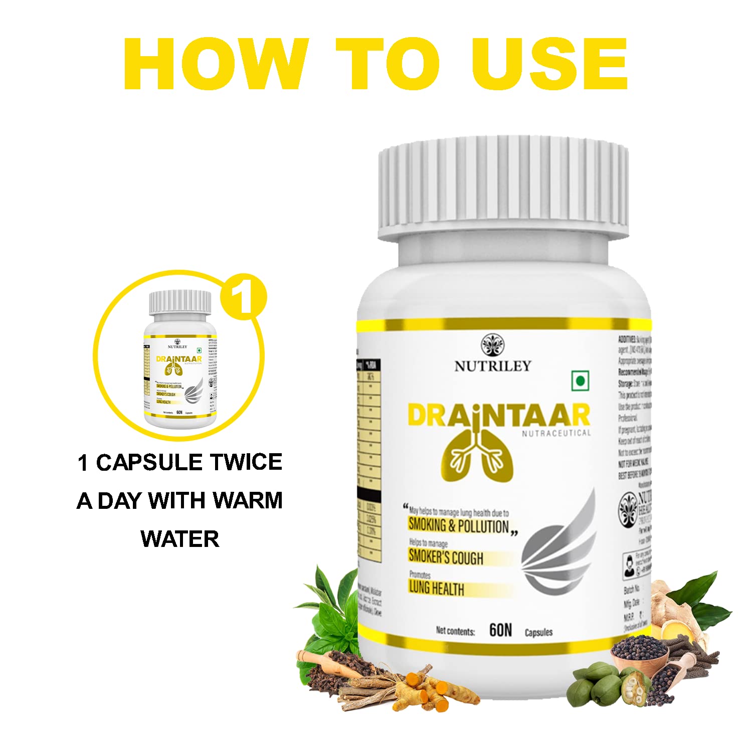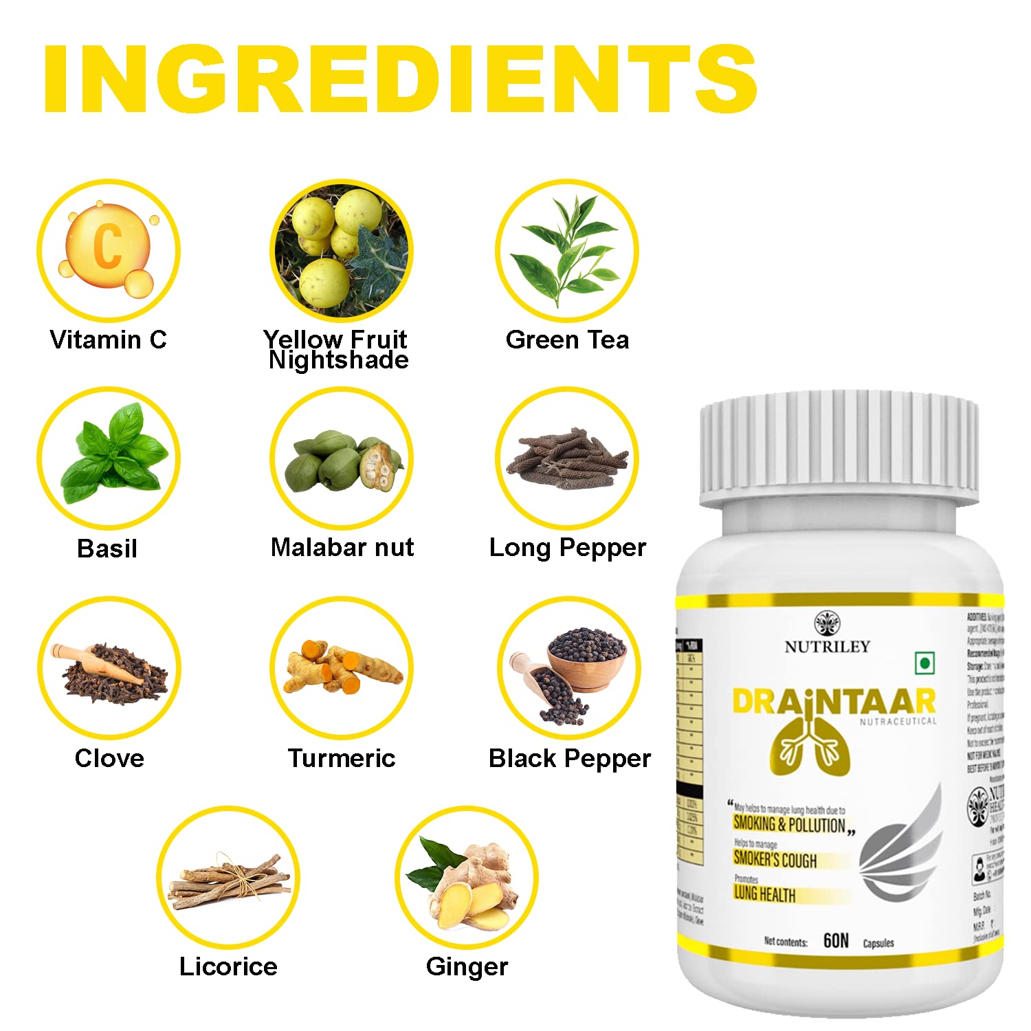 Nutriley Lung Detox Tablets Lung Supplement Lung Detoxification Capsules For Women & Men (60 capsules)