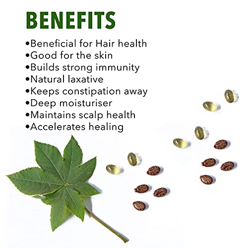 Nutriorg Castor Oil Capsules 60 Softgels Bottle | For Constipation Relief, Skin & Hair Care, Detoxification, Immunity Booster | Ricinus Communis Seed Oil for Women & Men