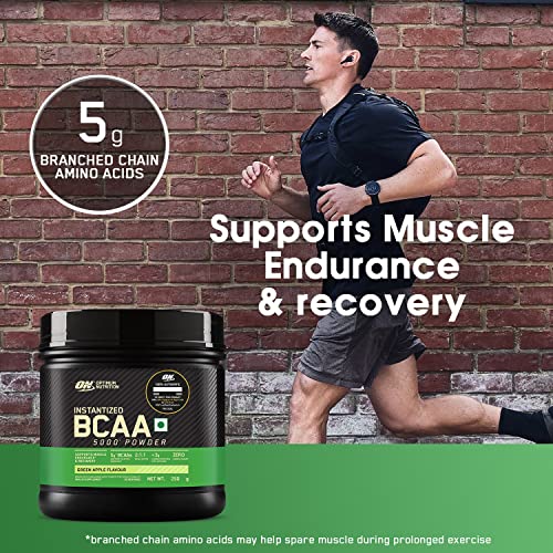 Optimum Nutrition BCAA, 5g BCAAs in 2:1:1 Ratio, 30 servings, For Muscle Recovery & Endurance, Intra workout, Informed Choice certified (250gm, Green Apple)