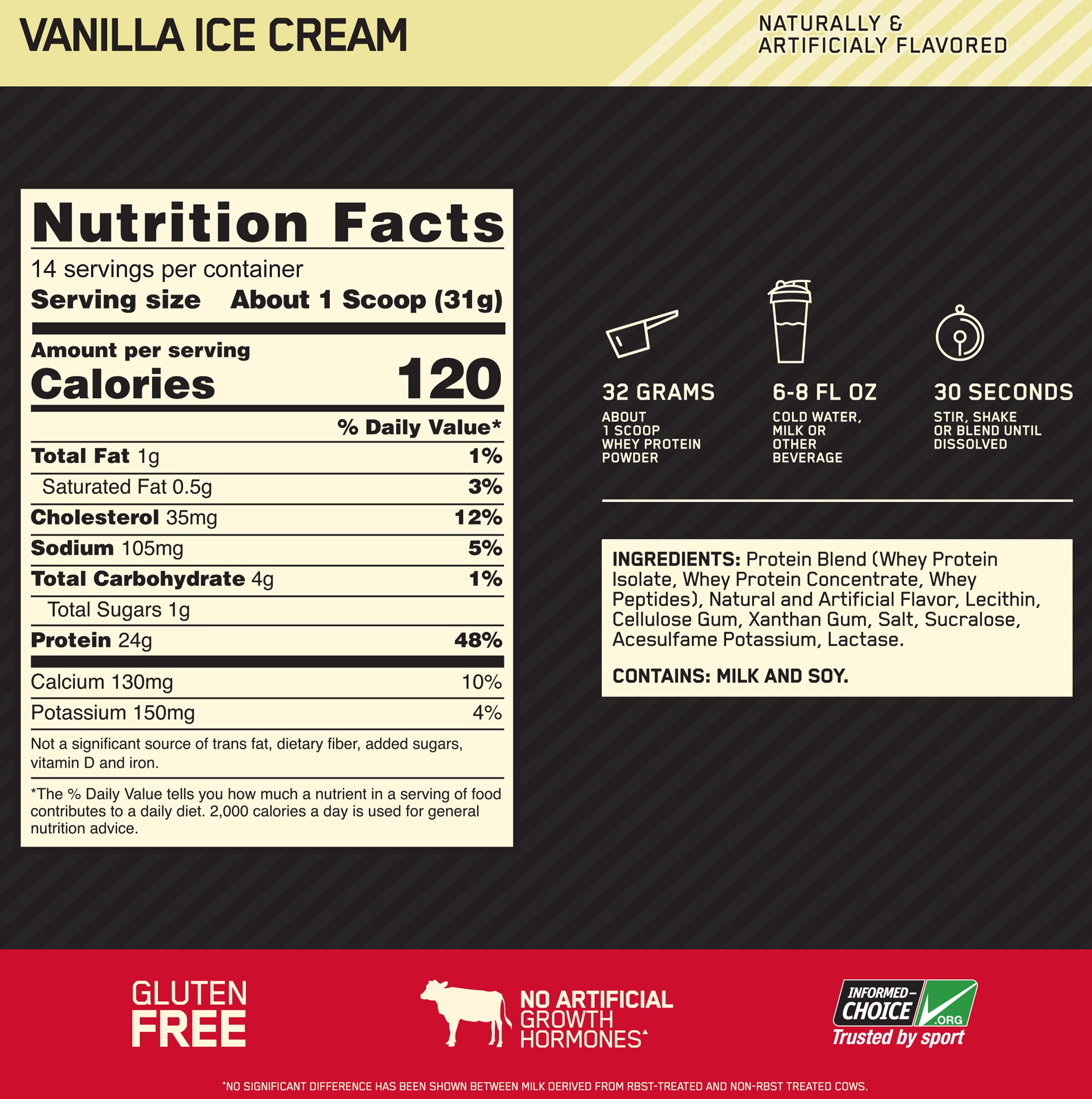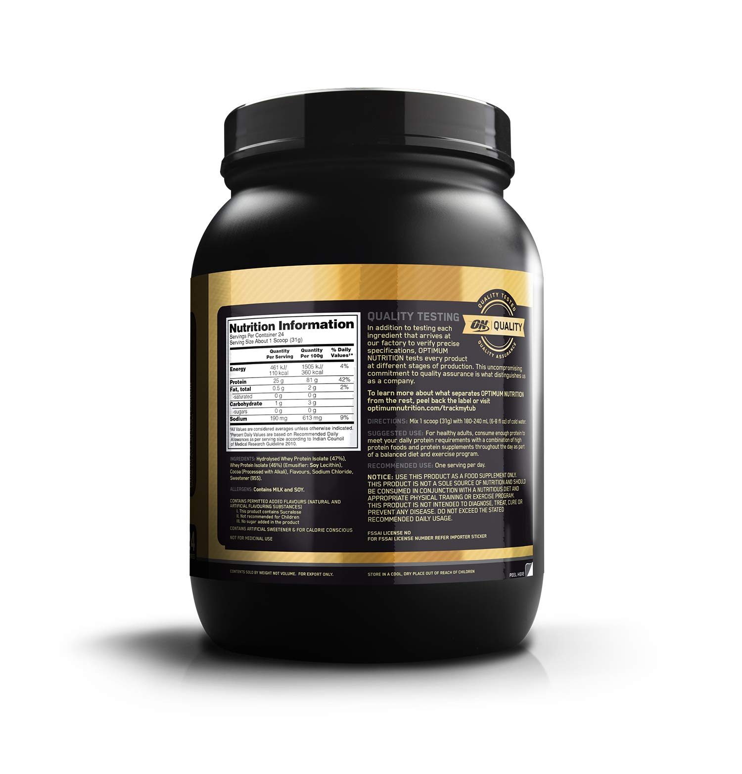 Optimum Nutrition (ON) Gold Standard 100% Isolate 1.6 lb 744 g (Chocolate Bliss) for Muscle Support & Recovery Vegetarian - 100% Protein from Whey IsolateTo create GOLD STANDARD 100% ISOLATE we start by selecting only the highest quality whey protein which undergoes a series of sophisticated filtration processes to âisolateâ out excess fat cholesterol and sugar. A portion of this Whey Protein Isolate is then hydrolyzed â broken down into smaller chains of amino acids. The final product is a fast-digesting complete protein containing no more than 1 gram of carbohydrates less than a gram of fat and more than 80% pure protein per serving to support your muscle building performance and fitness goals.Optimum Nutrition (ON) Gold Standard 100% Whey Protein Powder 1 lbs 454 g (Vanilla Ice Cream) for Muscle Support & Recovery Vegetarian - Primary Source Whey IsolateOptimum Nutrition's Gold Standard 100% Whey uses pure Whey Protein Isolates as the primary ingredient. Combined with ultra-filtered whey protein concentrate each serving provides 24 grams of all-whey protein and 5.5 grams of naturally occurring Branched Chain Amino Acids (BCAAs) which are prized by athletes for their muscle building qualities. With 10 tempting flavors to choose from ON Gold Standard 100% Whey gives you plenty of ways to keep workout recovery interesting. To instantly check the authenticity of your ON product SMS us your 6 digit unique code (on the pack) at 57575 or visit our wesite AUTHENTICATEON.in
