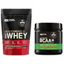 Optimum Nutrition (ON) Gold Standard 100% Whey Protein Powder - 1 lb (Double Rich Chocolate) Primary Source IsolateOptimum Nutrition's Gold Standard 100% Whey uses pure Whey Protein Isolates as the primary ingredient. Combined with ultra-filtered whey protein concentrate each serving provides 24 grams of all-whey protein and 5.5 grams of naturally occurring Branched Chain Amino Acids (BCAAs) which are prized by athletes for their muscle building qualities. With 10 tempting flavors to choose from ON Gold Standard 100% Whey gives you plenty of ways to keep workout recovery interesting. To instantly check the authenticity of your ON product SMS us your 6 digit unique code (on the pack) at 57575 or visit our wesite AUTHENTICATEON.inOptimum Nutrition BCAA 5g BCAAs in 2:1:1 Ratio 30 servings For Muscle Recovery & Endurance Intra workout Informed Choice certified (250gm Fruit Punch)BCAA 5000 Powder by Optimum Nutrition delivers five grams of BCAAs per serving in the preferred 2:1:1 ratio of leucine to isoleucine and valine to support muscle recovery and endurance. Itâs instantized for easy mixing into water juice or post-workout shakes. Each 250gm has 30 servings and comes in two delicious flavours.