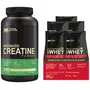 Optimum Nutrition (ON) Micronized Creatine Powder - 250 Gram 83 Serves 3g of 100% Creatine Monohydrate per serve Supports Athletic Performance & Power Unflavored.Creatine is naturally produced in our body and it is used in the recycling of ATP which is our bodyâs energy currency. Creatine monohydrate is one of the most well-researched sports nutrition ingredients. When used in combination with regular weight training it has been shown to support athletic performance and power.Optimum Nutrition (ON) Gold Standard 100% Whey Protein Powder- 5 X 30.4 g Single Serve Sachets (Double Rich Chocolate) for Muscle Support & Recovery Vegetarian - Primary Source Whey IsolateWorldâs #1 selling whey protein powder Optimum Nutrition Gold Standard 100% Whey now available in affordable travel friendly and very handy single serve sachets. This pack contains five single serve sachets and each sachet provides one serving that will provide 24 grams of protein 11 grams of naturally occurring essential amino acids including 5.5 grams BCAAs and over 4 grams of glutamine. To instantly check the authenticity of your ON product SMS us your 6 digit unique code (on the pack) at 57575 or visit our website AUTHENTICATEON.in