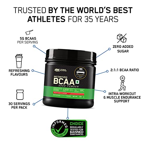 Optimum Nutrition (ON) Serious Mass High Protein High Calorie Weight Gainer Powder - 1 kg (Chocolate) with Vitamins and Minerals Suitable for VegetariansNow Suitable for Vegetarians SERIOUS MASS is the ultimate weight gain and muscle building formula. With +1200 calories per 2-scoop serving and 50 grams of protein to support muscle recovery this powder makes the ideal post-workout and between meals shake for sizing up your goals. SERIOUS MASS provides you with the tools you need to support your weight gains goals.Optimum Nutrition BCAA 5g BCAAs in 2:1:1 Ratio 30 servings For Muscle Recovery & Endurance Intra workout Informed Choice certified (250gm Fruit Punch)BCAA 5000 Powder by Optimum Nutrition delivers five grams of BCAAs per serving in the preferred 2:1:1 ratio of leucine to isoleucine and valine to support muscle recovery and endurance. Itâs instantized for easy mixing into water juice or post-workout shakes. Each 250gm has 30 servings and comes in two delicious flavours.