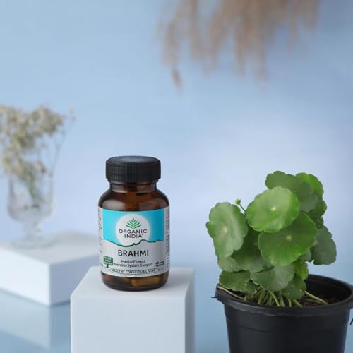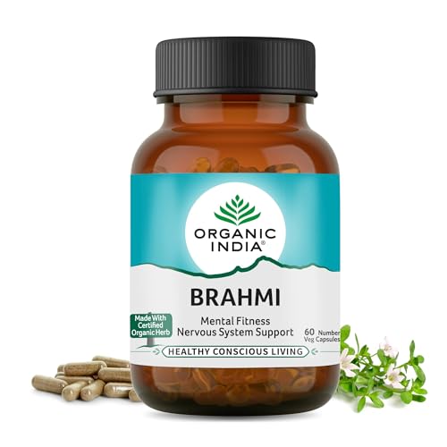 A TATA Product - Organic India Brahmi - 60 Veg Capsules, Naturally Promotes Concentration & Memory, Mental Fitness, Reduces Stress & Anxiety, GMP & NPOP Certified Organic