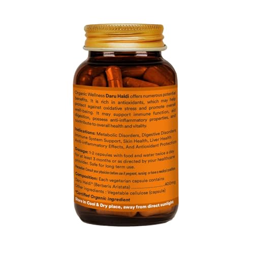 Organic Wellness Daru Haldi Capsule offers numerous potential benefits. It is rich in antioxidants which may help protect against oxidative stress and promote overall well-being. It may support immune function aid digestion possess anti-inflammatory properties and contribute to overall health and vitality.