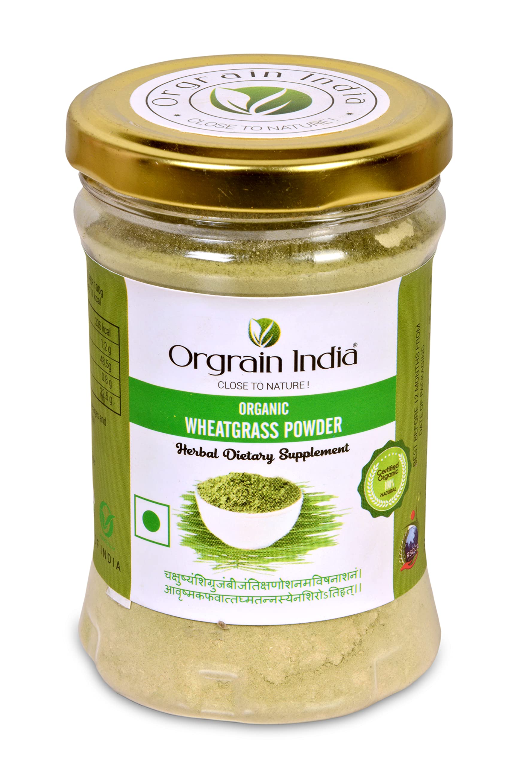 BENEFITS OF ORGANIC WHEAT-GRASS POWDER Orgrain India Organic Wheatgrass powder is nature's finest remedy for overall health and well-being. It is rich in Vitamins minerals Calcium Proteins and enzymes. The high chlorophyll content in wheatgrass makes it an excellent all-natural detoxifier. Our product is CERTIFIED ORGANIC in accordance with Indian standards along with being RAW VEGAN and GLUTEN-FREE