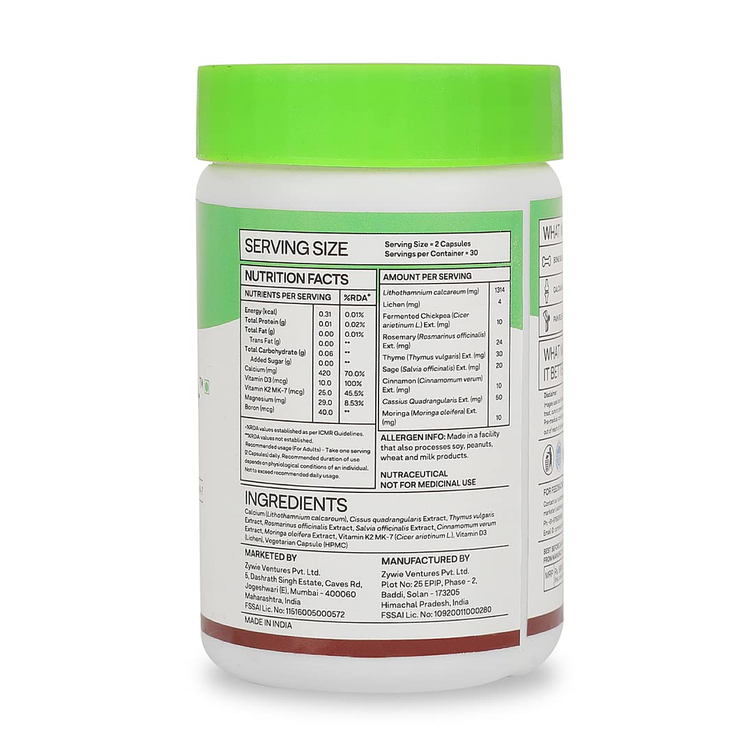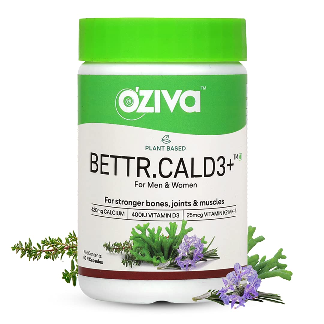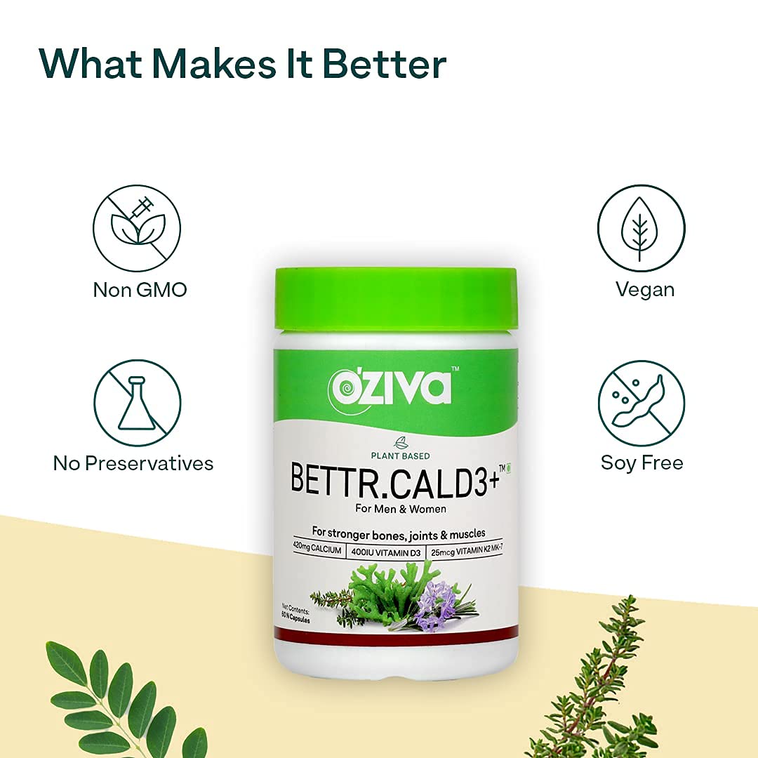 OZiva Bettr.CalD3+ (Plant-Based Calcium Vitamin D3 & K2) for Stronger Bones Joints & Muscles Better Calcium Absorption Certified Vegan 60 Veg capsules