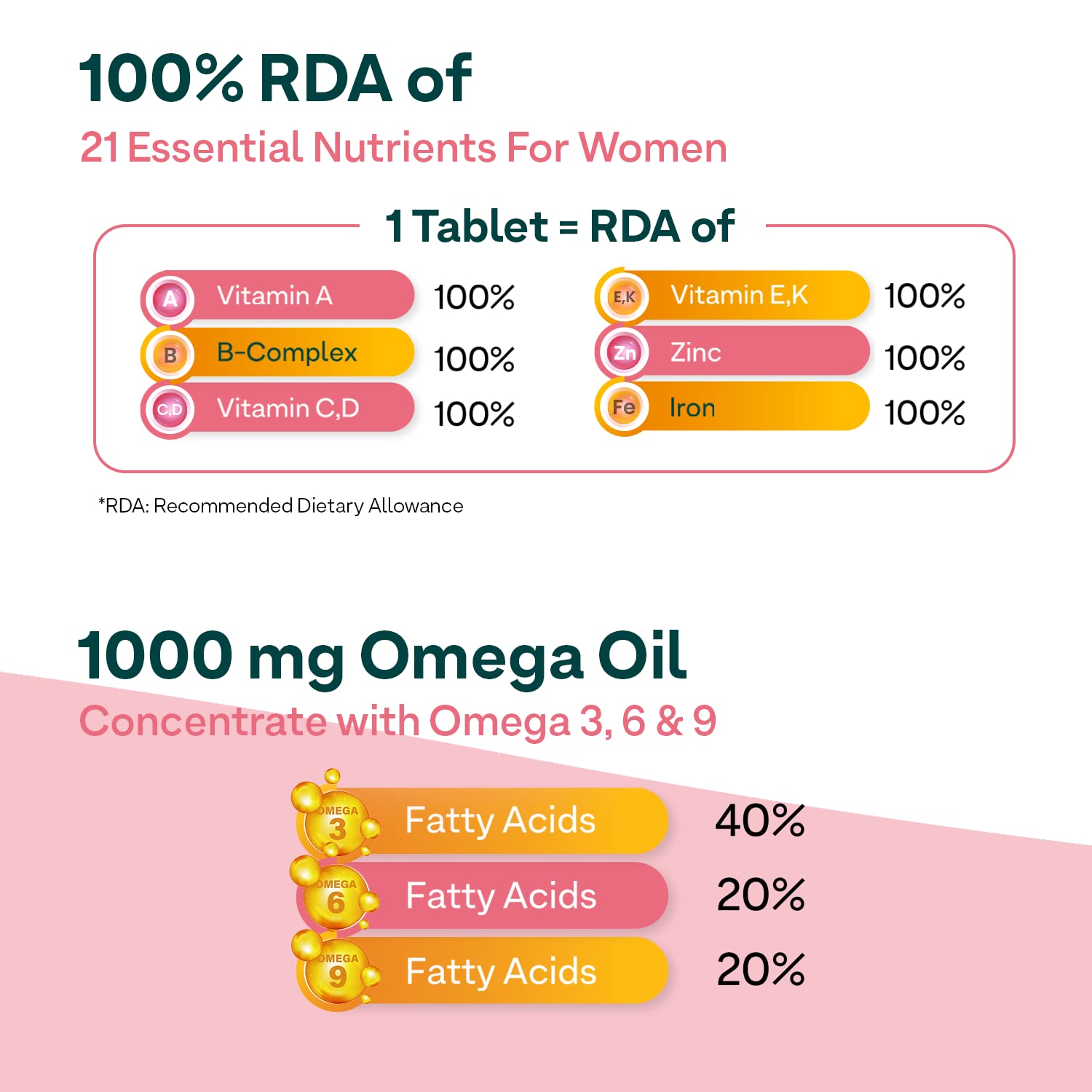 OZiva Daily Womenâs Multi | Multivitamin capsules for Women with Shatavari & Brahmi | Supplements for Hormonal Balance & Stress Management (Wellness combo Pack)