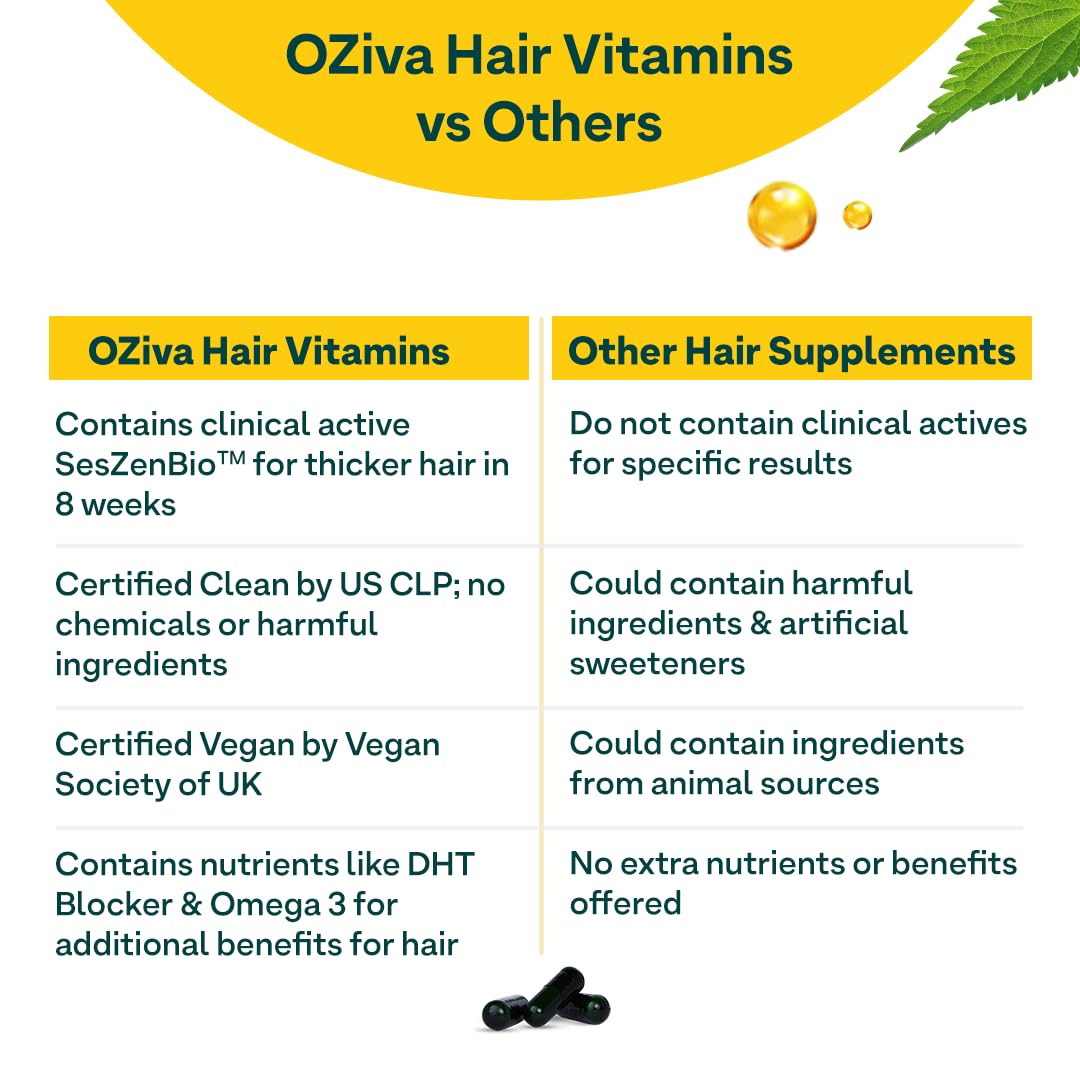 • OZiva Hair Vitamins Capsules for Hair Fall Control (with Omega 3 Biotin Vitamin A & Natural DHT Blocker) Hair Supplements for Men & Women