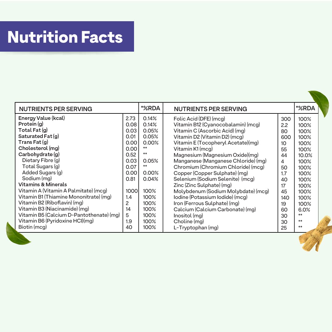 • Provides daily stamina and energy with standardised herbal extracts of Ashwagandha Safed Musli Kawanch beej and Valerian Root