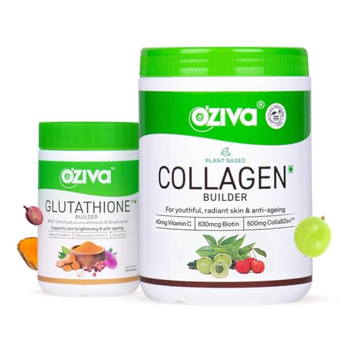 OZiva Plant Based Collagen Classic Supplement 250 g and OZiva Plant Based Glutathione Builder 60 Vegetarian Capsules