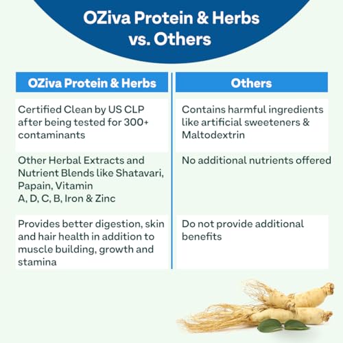 • CERTIFIED CLEAN WHEY PROTEIN: OZiva Protein & Herbs for Men is a soy-free and gluten-free whey protein powder for men that contains no added sugar or artificial sweeteners making OZiva absolutely safe for long term consumption. OZiva is 100% natural and i