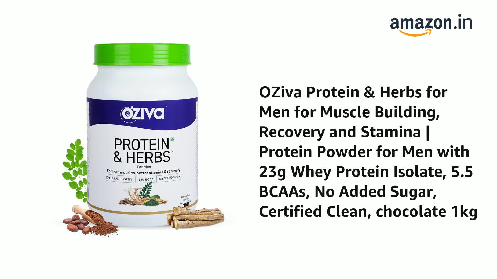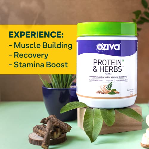 OZIVA Protein & Herbs, Men with Multivitamins,Ashwagandha,Brahmi,Maca, Musli for Improved Stamina, Lean Muscles & Recovery, 2.2 lbs, Chocolate. Soy Free, Gluten Free, Non GMO