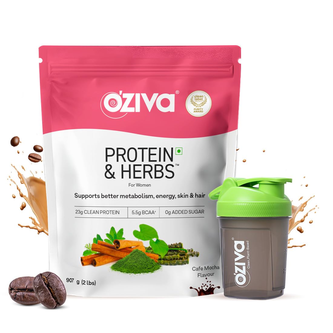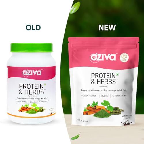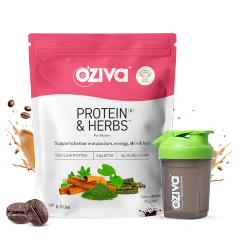 OZiva Protein & Herbs for Women (Cafe Mocha) I Manage Weight, Energy & Metabolism | Clean Protein, Shatavari, Green Tea I No Added Sugar, 2lbs + Shaker