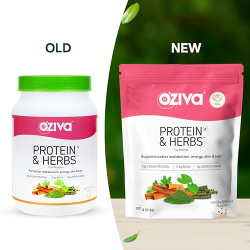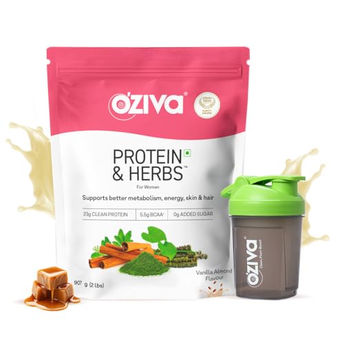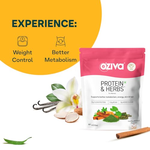 OZiva Protein & Herbs for Women (Vanilla Almond) I Manage Weight, Energy & Metabolism | Clean Protein, Shatavari, Green Tea I No Added Sugar, 2lbs with Shaker