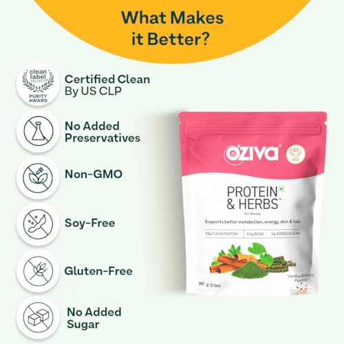 • Har Tarah Se Better With Certified Clean Products: OZiva Protein & Herbs for Women is a soy-free and gluten-free protein powder for women that contains no added sugar or artificial sweeteners making it absolutely safe for long term consumption. It is 100%