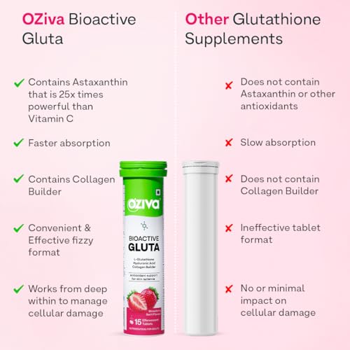 OZiva Vegan Collagen (Tangy Amla) with Biotin & Vitamin C For Brighter & Youthful Skin 200g and OZiva Bioactive Glutathione Tablets for Radiant Skin | L-Glutathione, Lycopene