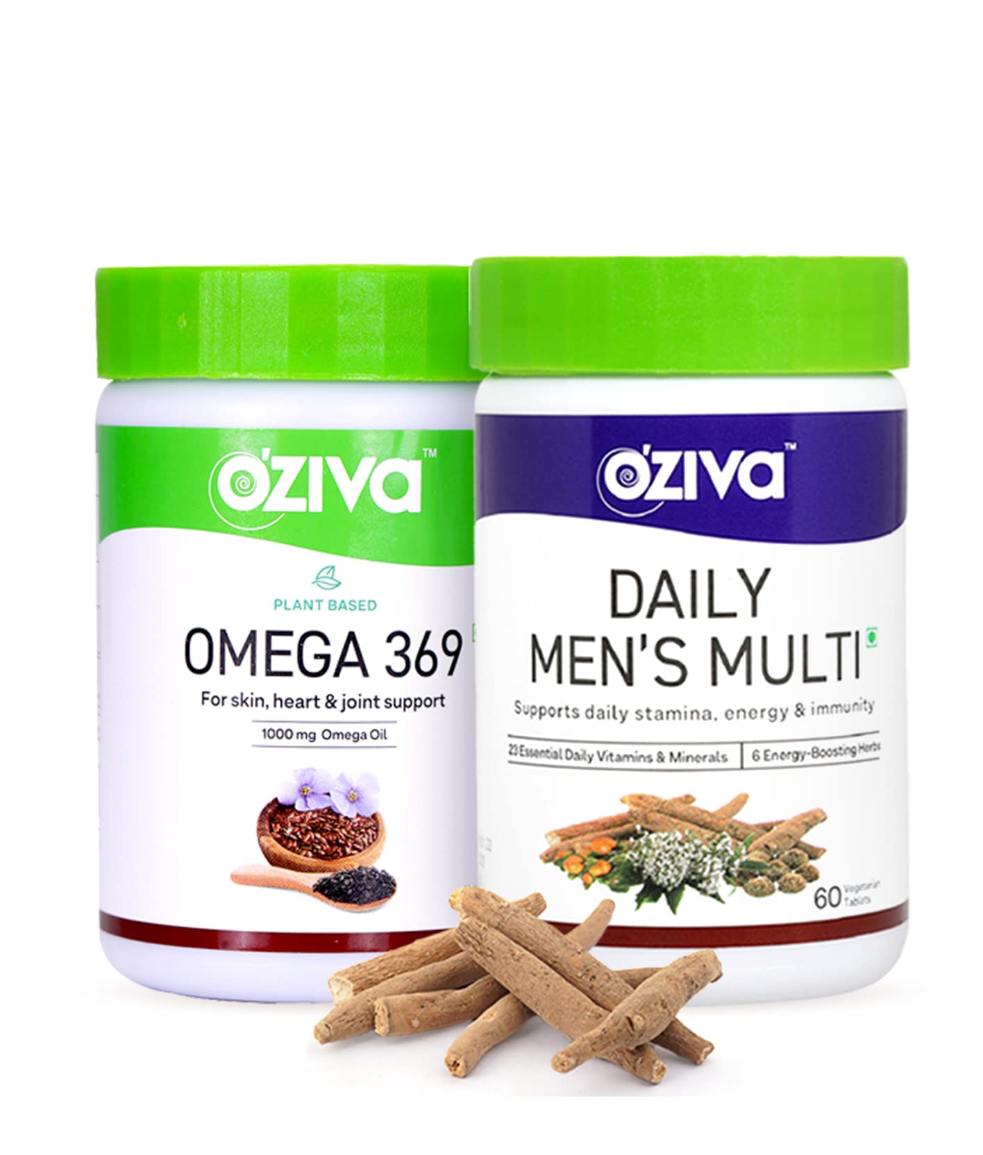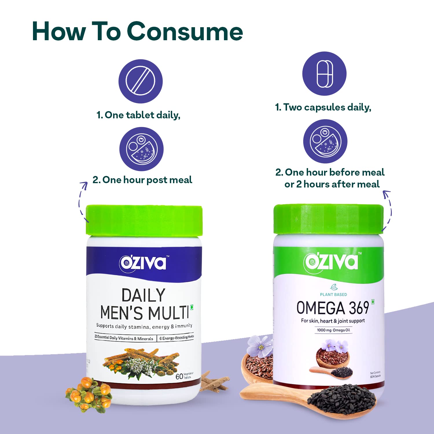 OZiva Wellness Combo For Men (60 Veg Tablets of Daily Menâs Multi with Multivitamins & Minerals And 60 Veg Capsules of Omega 369 With Vegan Omega) For Energy Stamina Immunity & Heart Health