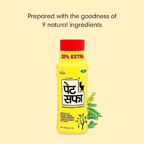 Pet Saffa, Natural Laxative Granules is very effective in relieving from and associated tro-intestinal s. It contains 11 herbs, which helps to pacify all doshas in the body thus improving processes in the eventually warding off . 11 herbal natural herbs are , Ajwain , Ispaghula, Triphala, Bellirica & Emblica officinalis ,Svarjiksara , Haritaki ,Amaltash , Saunf ,Sonth, Nisot, Jeera and Castor Oil. These herbal ingredients are special in a way as it does not alter the natural composition of our system and act as a natural aid for .