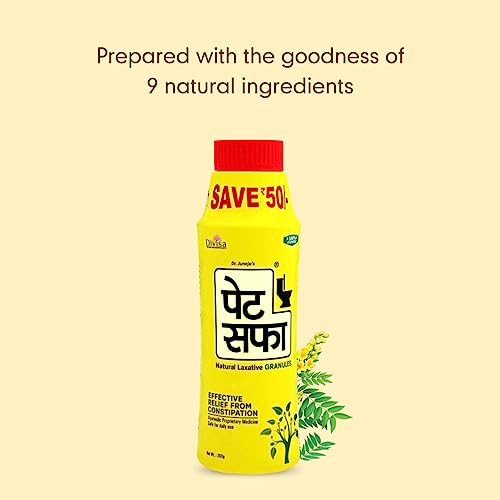 Pet Saffa, Natural Laxative Granules is very effective in relieving from and associated tro-intestinal s. It contains 11 herbs, which helps to pacify all doshas in the body thus improving processes in the eventually warding off . 11 herbal natural herbs are , Ajwain , Ispaghula, Triphala, Bellirica & Emblica officinalis ,Svarjiksara , Haritaki ,Amaltash , Saunf ,Sonth, Nisot, Jeera and Castor Oil. These herbal ingredients are special in a way as it does not alter the natural composition of our system and act as a natural aid for .