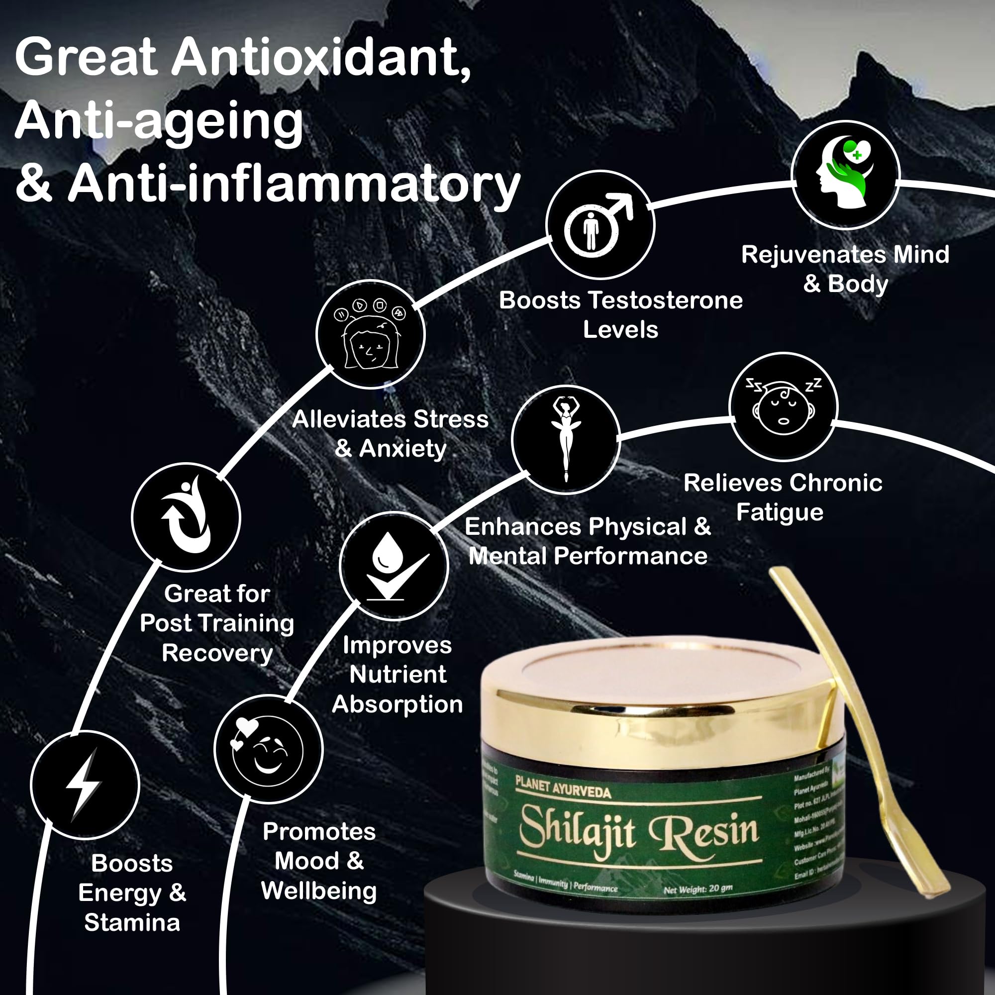 Reduces Stress Levels & Improves Sleep Quality: Planet Ayurveda Shilajit Resin induces relaxation and enhances memory which are two of its calming and stress-relieving qualities. It lowers stress hormones and raises feel-good happy hormones that improve m