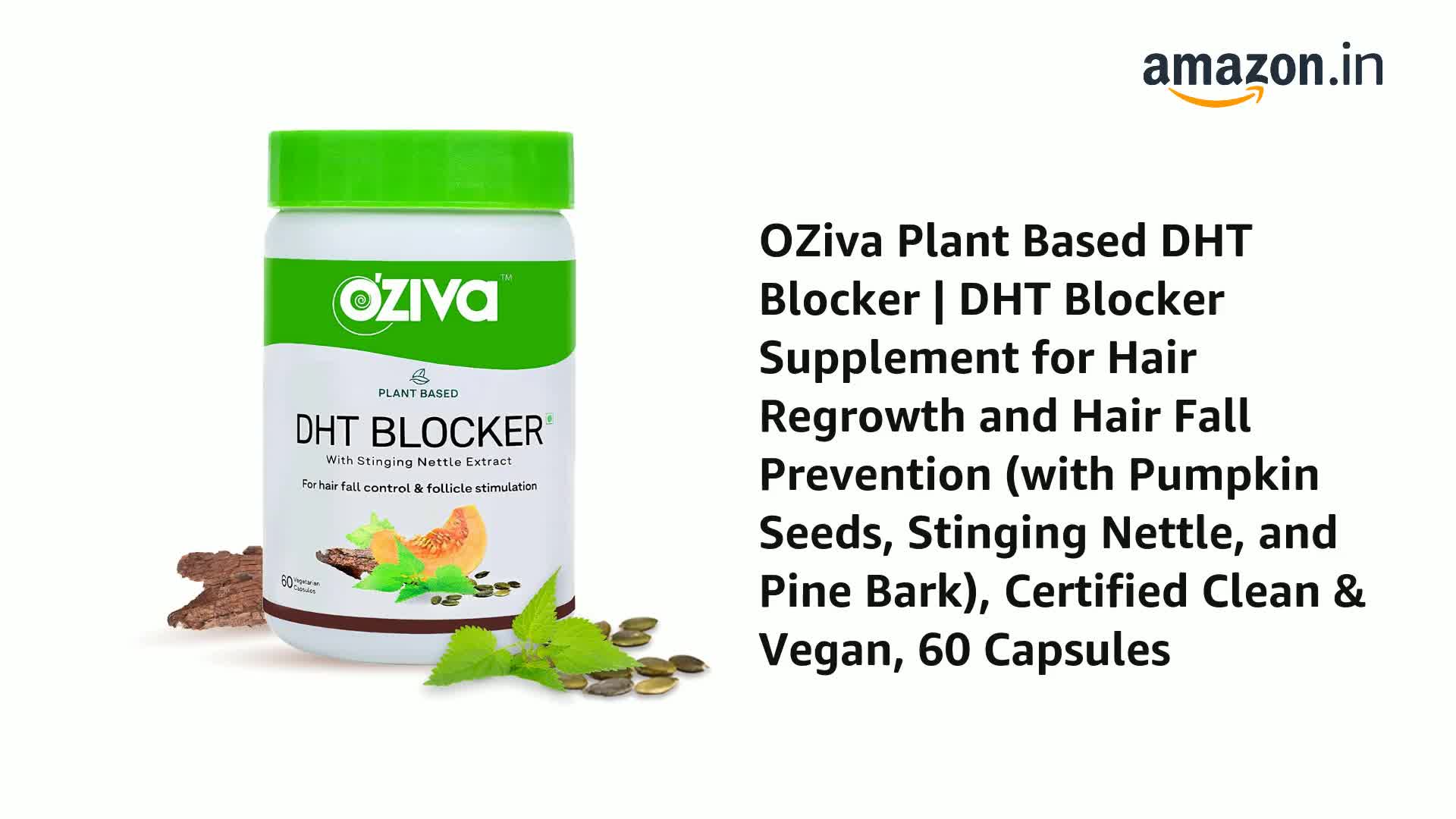OZiva Plant Based DHT Blocker Capsules| 60 Count | with Stinging Nettle Beta Sitosterol Pumpkin Seed Pine Bark for Hairfall Control & Follicle Stimulation (60 Count)