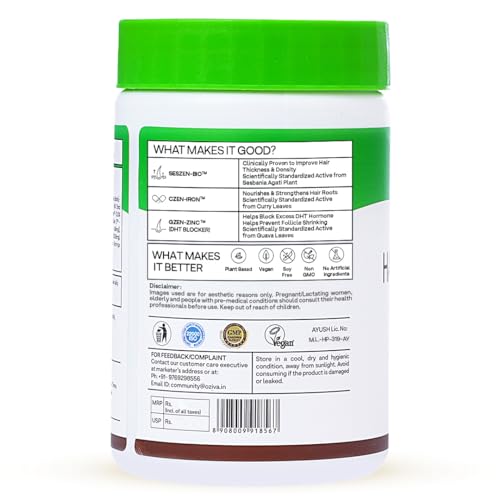Better With Clean & Plant-Based Products: OZiva Hair Vitamins is a soy-free and gluten-free hair vitamin supplement that contains no added sugar or artificial sweeteners making it absolutely safe for long term consumption. It is 100% plant-based and is Ce