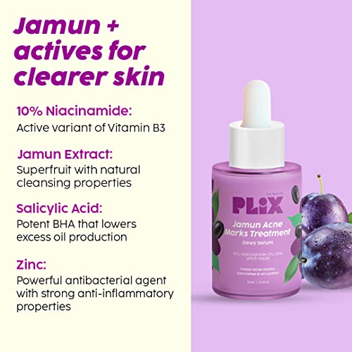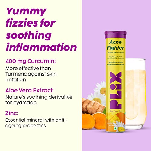 PLIX - THE PLANT FIX Acne Fighter 15 Effervescent Tablets and Jamun Face Serum Combo for Acne Reduction, 1% Zinc & Witch Hazel for Unisex, 500mg Curcumin, Chamomile