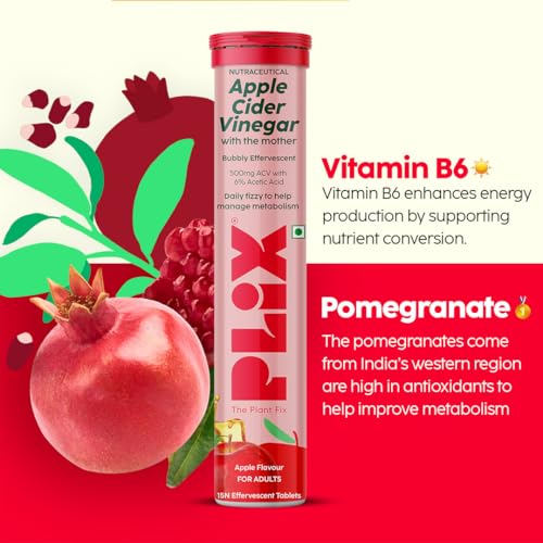 HomeHealth & PersonalDiet & NutritionHealth SupplementsTHE PLANT FIX Apple Cider Vinegar Effervescent Tablet with mother | Supports Metabolism & Appetite Control I With 500mg ACV, Vit B6 & B12 I No Maltodextrin, No Added Sugar I Pack of 4 (60 tablets)