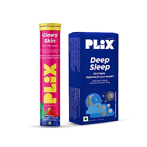 HomeHealth & PersonalDiet & NutritionHealth SupplementsPLIX - THE PLANT FIX Beauty Sleep Combo - Deep Sleep 30 Mini Mints with Melatonin for a Restful Sleep and Skin Glow Glutathione 15 Effervescent Tablets for Youthful and Glowy Skin,2 count,15 capsules